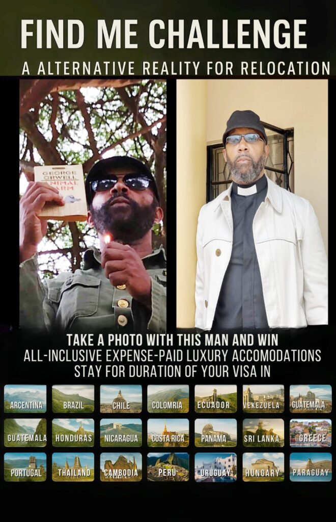 The Challenge Tab unveils the live, reader-funded pursuit across 20 hand-selected destinations, where 13 Contestants in each location follow the encrypted trail of Marcus Goss — The Ex-Fugitive.